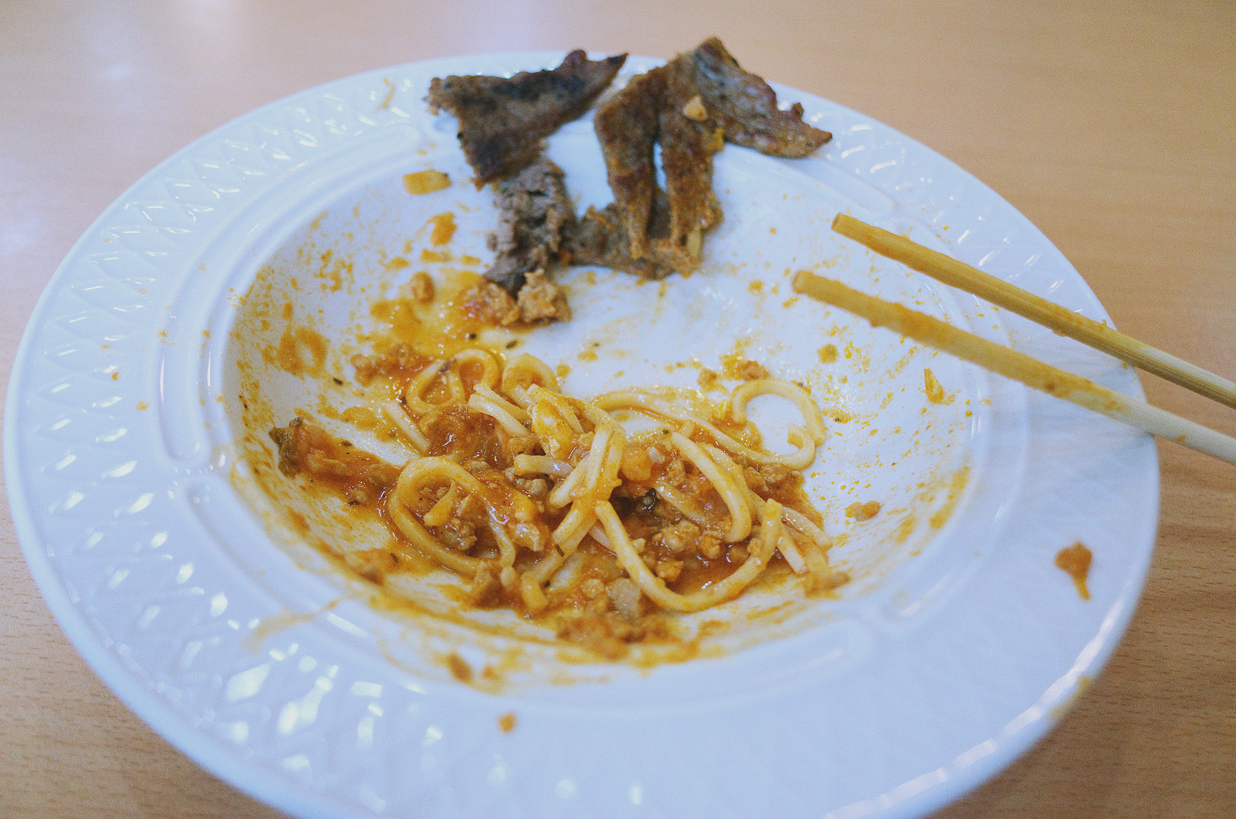 本想放棄了,卻還是「不用力」的把那鐵板麵吃完了。