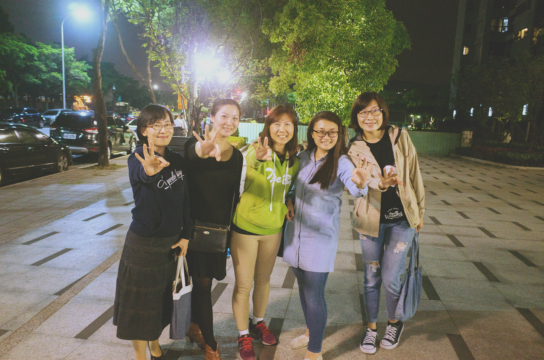 其實那時我還在晃神當中,正腦袋空空的準備離開,就被這聲大叫給驚醒了。回來看了照片,才發現原來大家都一起比三啊?「三倍的祝福」。然後某人跟我說以後不要帶相機了,不然會給她們嚇死!