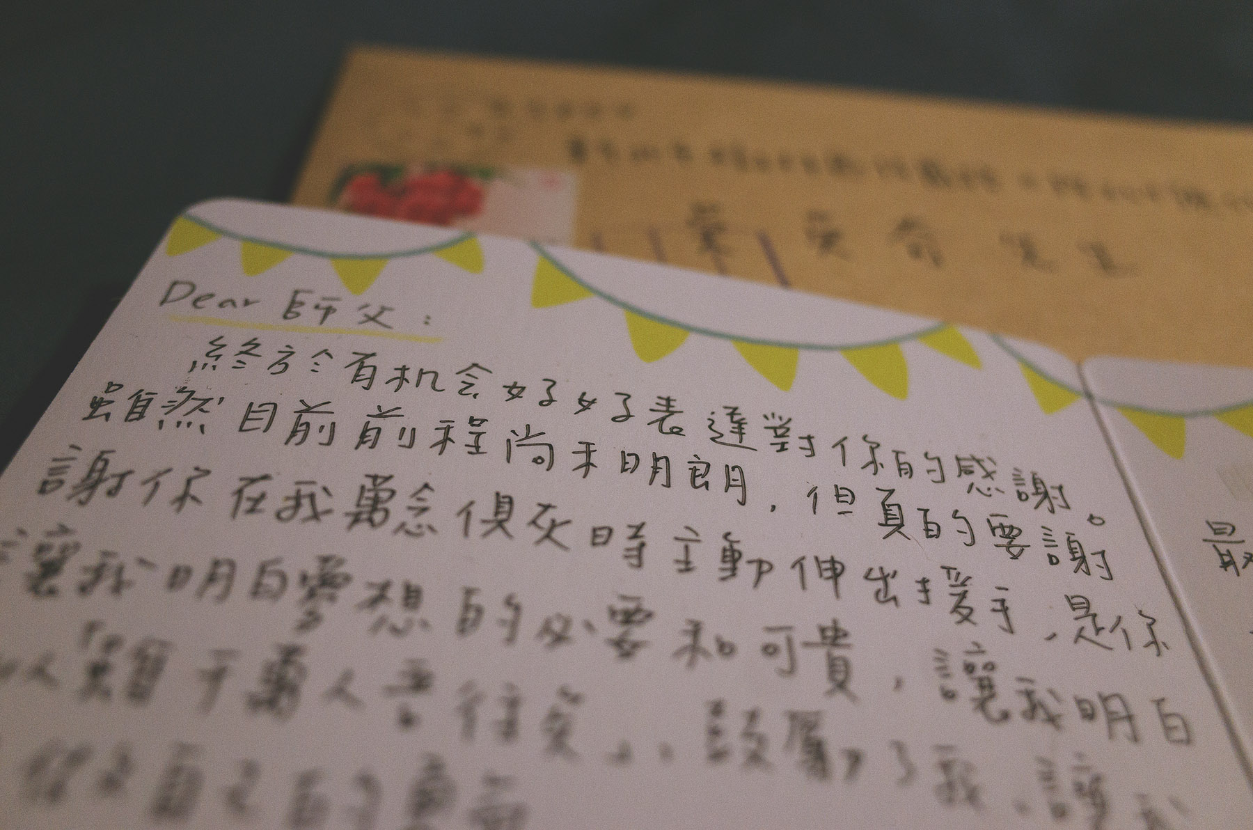 生日那天收到妳寄來的卡片,心裡暖暖的。雖然這陣子又一口氣發生了太多事,直到現在才終於能好好平靜下來,認真的看看卡片裡的文字。